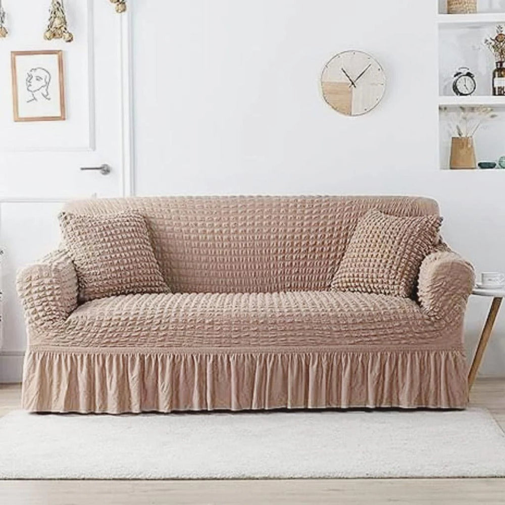 Revitalize your living space with aura living Home Decor's Turkish Bubble Sofa Covers – a perfect fusion of style and comfort! Immerse yourself in the exquisite Turkish frilled design, featuring a charming bubble pattern for an added touch of sophistication. Crafted from premium Turkish fabric, these fitted covers effortlessly enhance the aesthetic of your sofa, giving your home a fresh and stylish look.